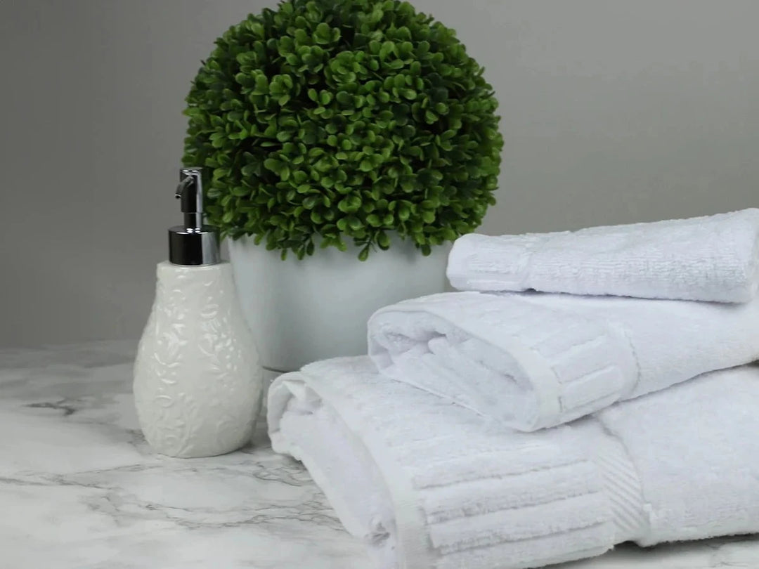 The Classic Hotel Towel is crafted from 750 GSM 100% Egyptian cotton, ensuring a soft and luxurious feel.